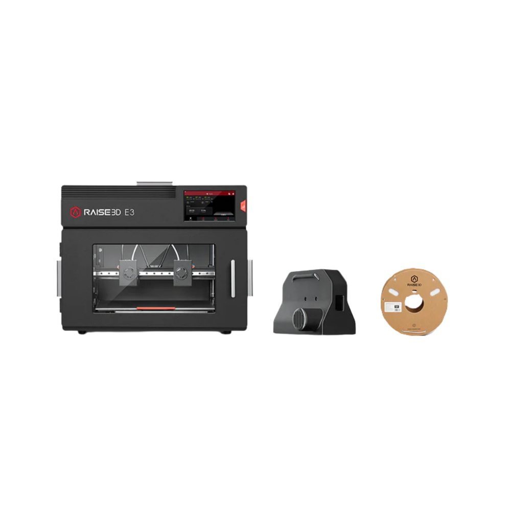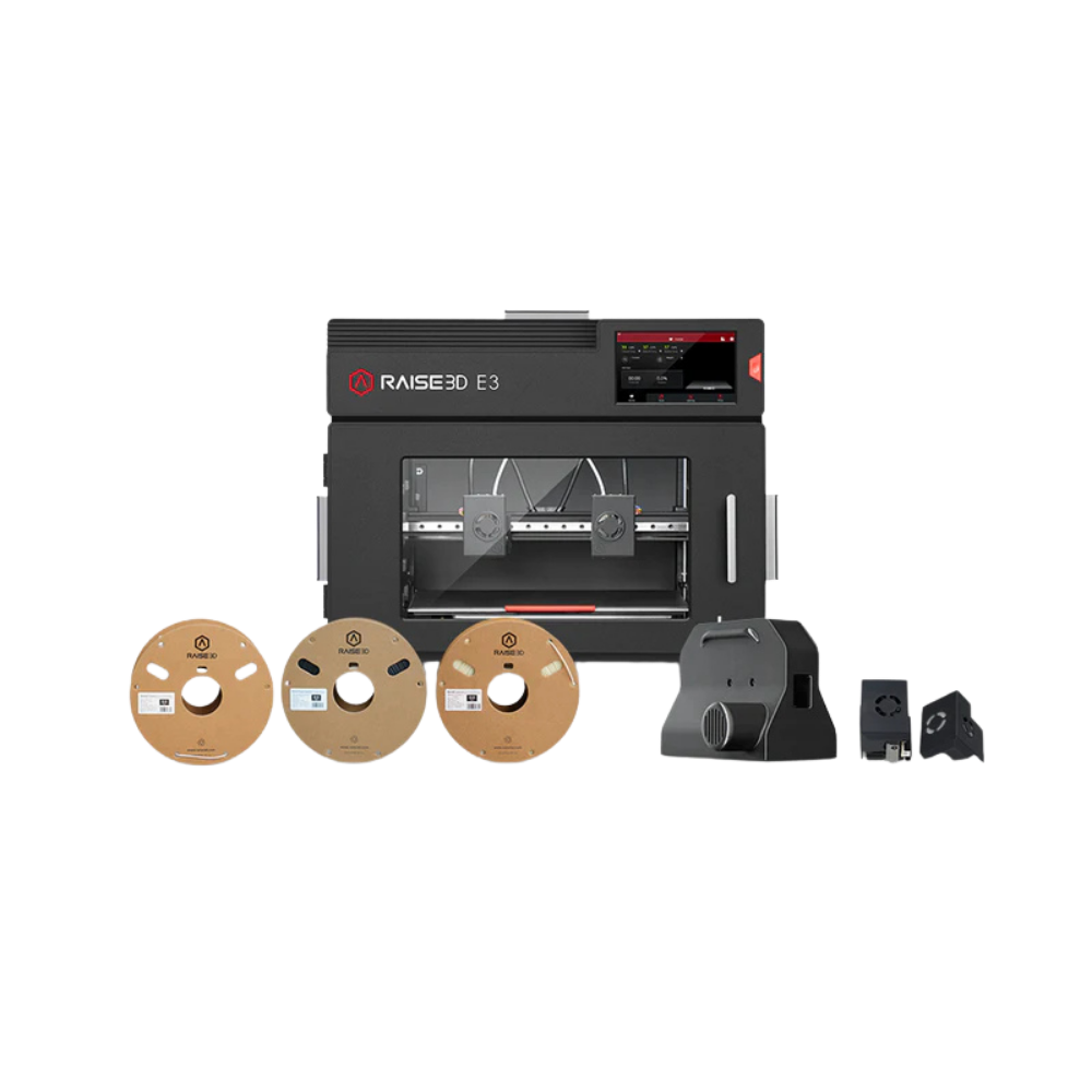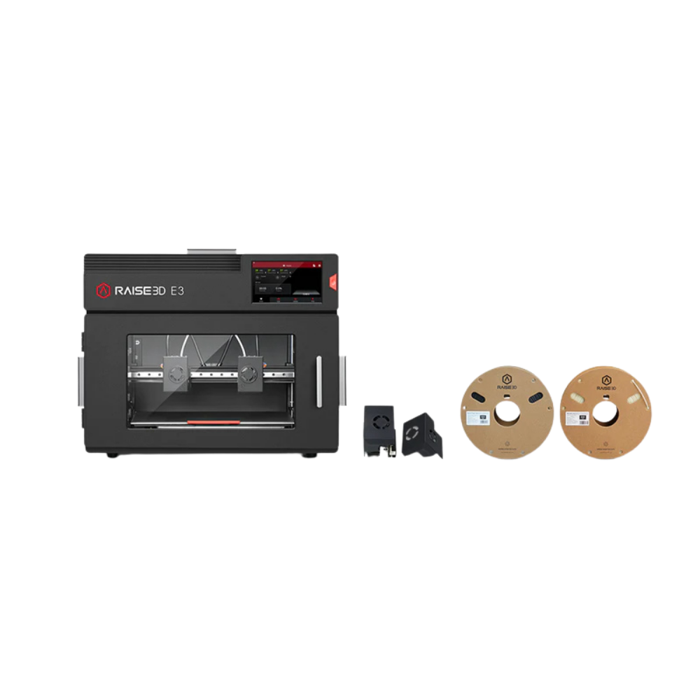 The Raise3D E3 IDEX printer delivers precise, stable, and fast prints of up to 200 mm/s for composite materials and TPU, perfect for prototyping and end-use part production. Built for diverse manufacturing needs, the E3 features the Flexible Filament Auxiliary Feeder and composite filament print head, suited for printing TPU, composite materials, and parts with specific surface finishes.