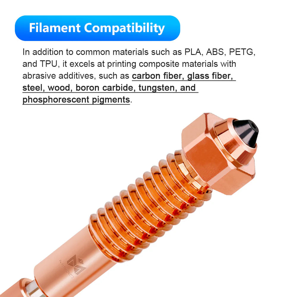 It is suitable for some fiber composite filaments such as PA-CF, PETG-CF and ABS-CF.