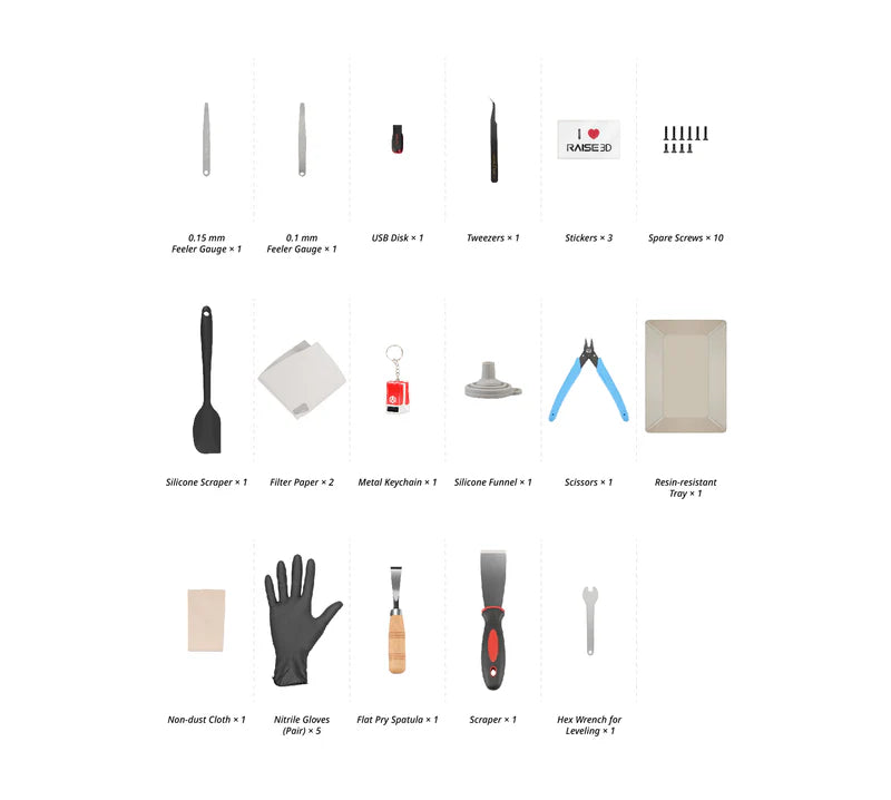 The Raise3D DF2 Tool Box is designed for basic machine repairs and maintenance.