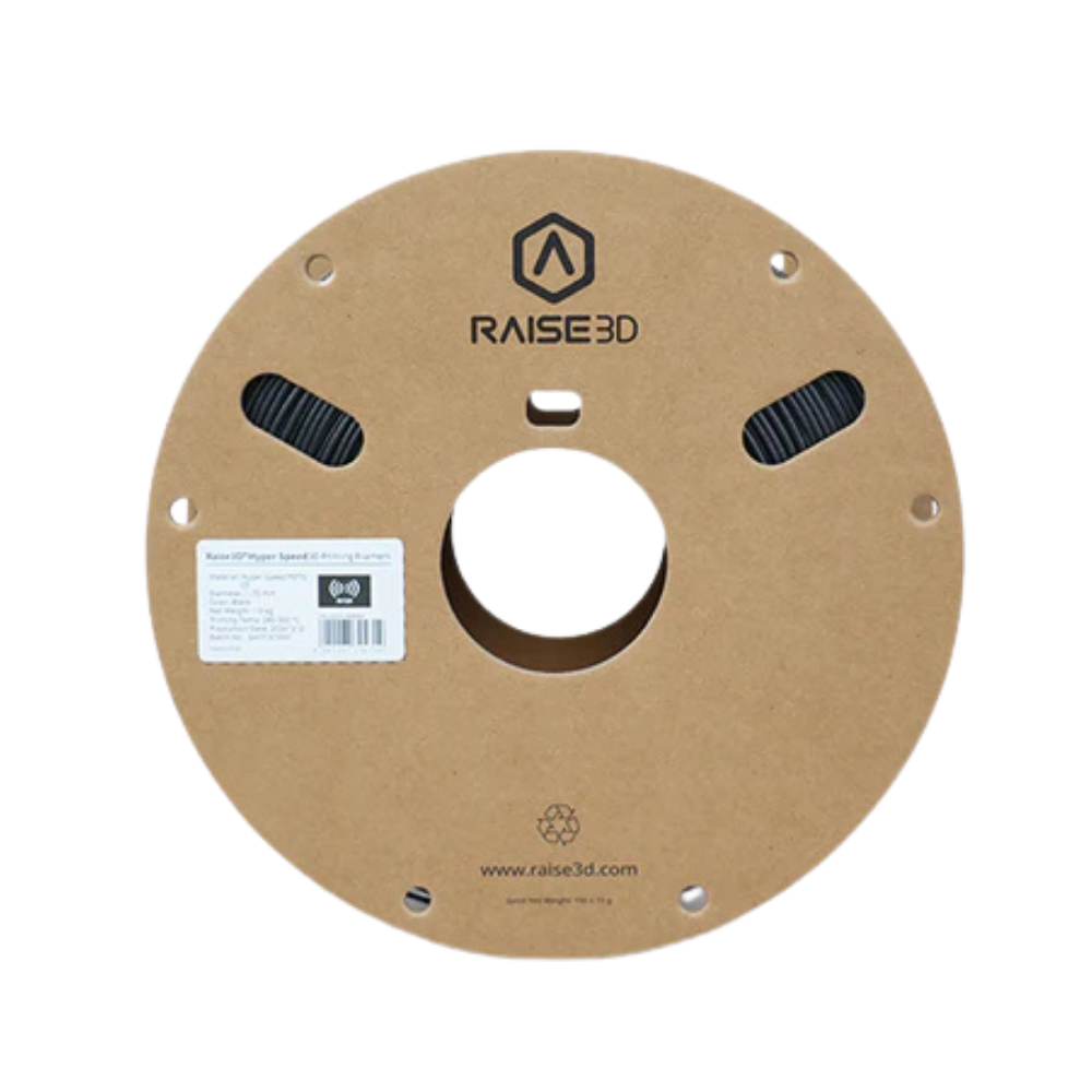 Raise3D Hyper Speed PETG CF is a carbon fiber-reinforced filament (containing 8 wt.% recycled carbon fibers) based on polyethylene terephthalate glycol-modified (PETG), optimized for use with Hyper FFF® technology (compatible up to L2 at 300 mm/s). This material maintains PETG’s outstanding general printing performance while offering enhanced matte carbon-fiber texture, as well as improved mechanical, thermal, and dimensional stability attributes thanks to the integration of recycled carbon fibers. It is an ideal material for prototyping and end-use functional applications that demand superior surface finish, reliability, and cost efficiency.